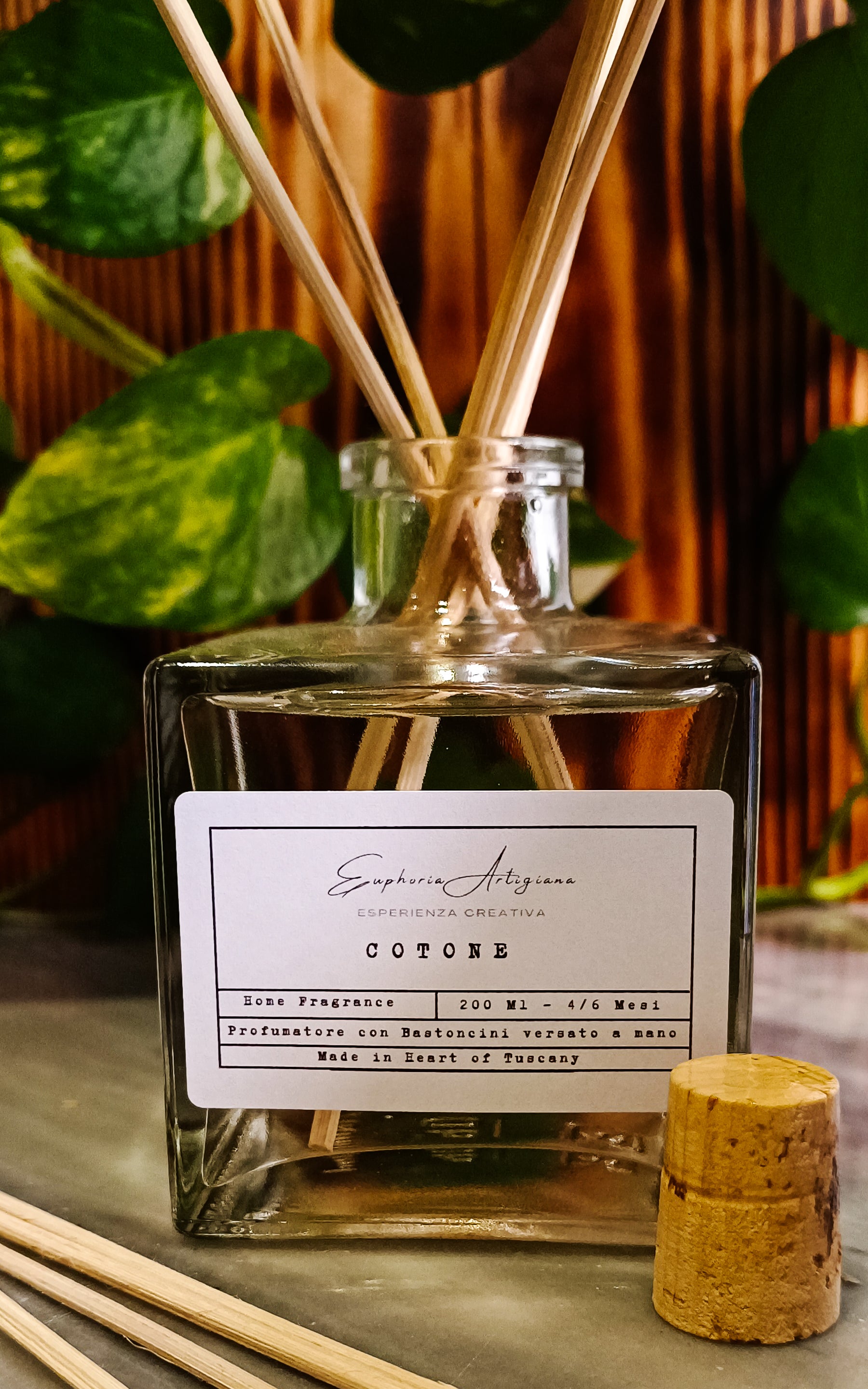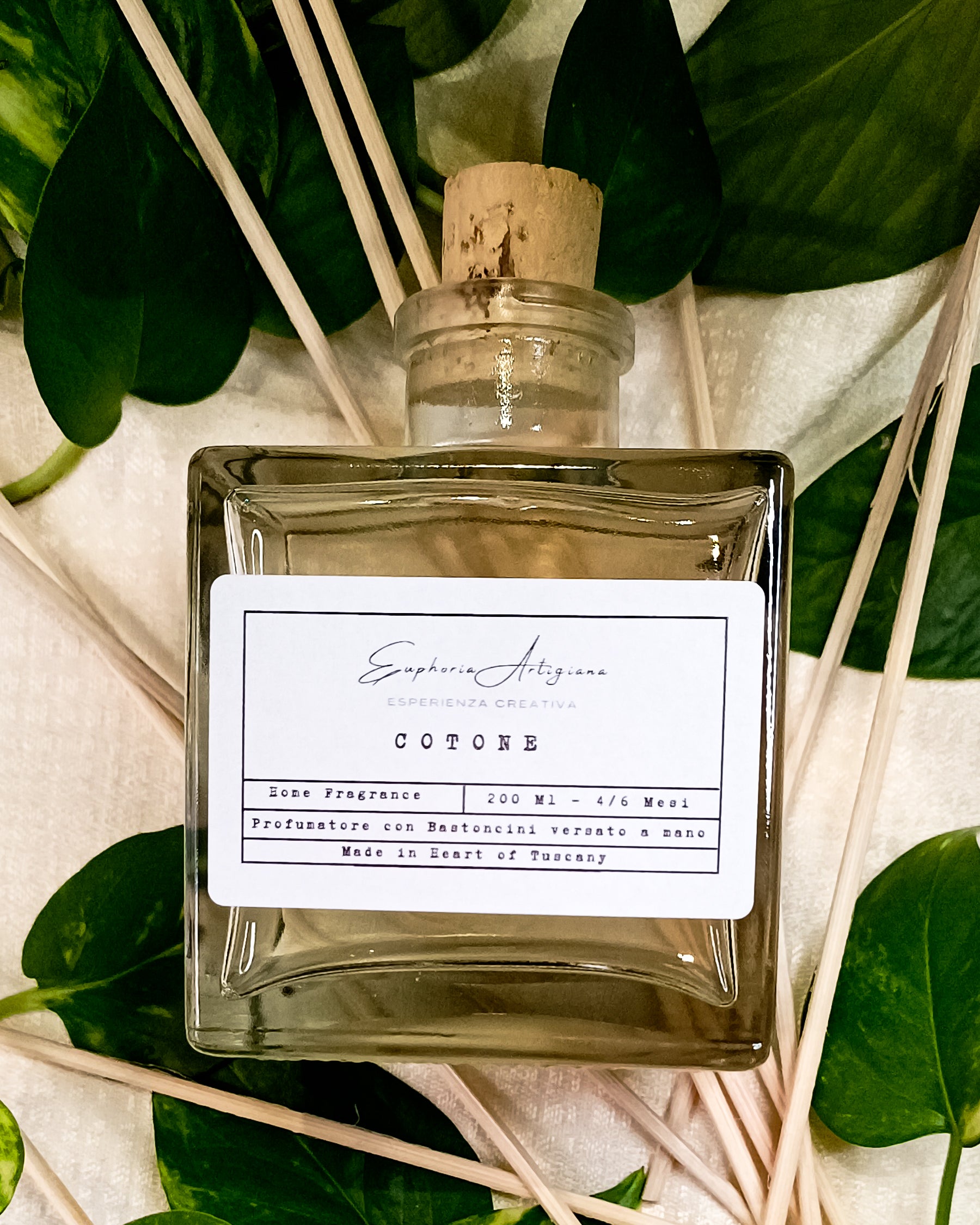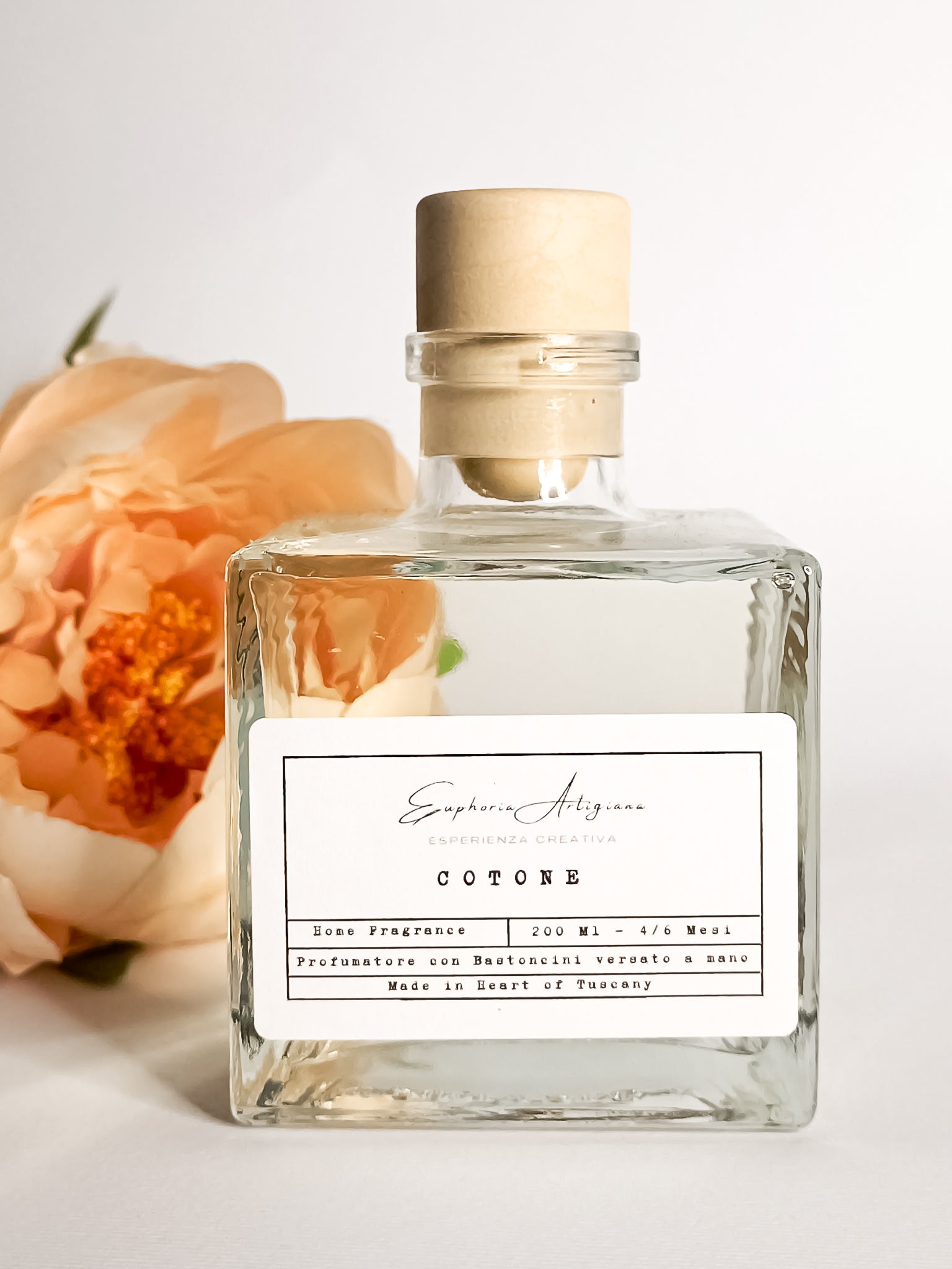Cotone, a strong and intense fragrance, with a lively amber base combined with woody and floral tones.