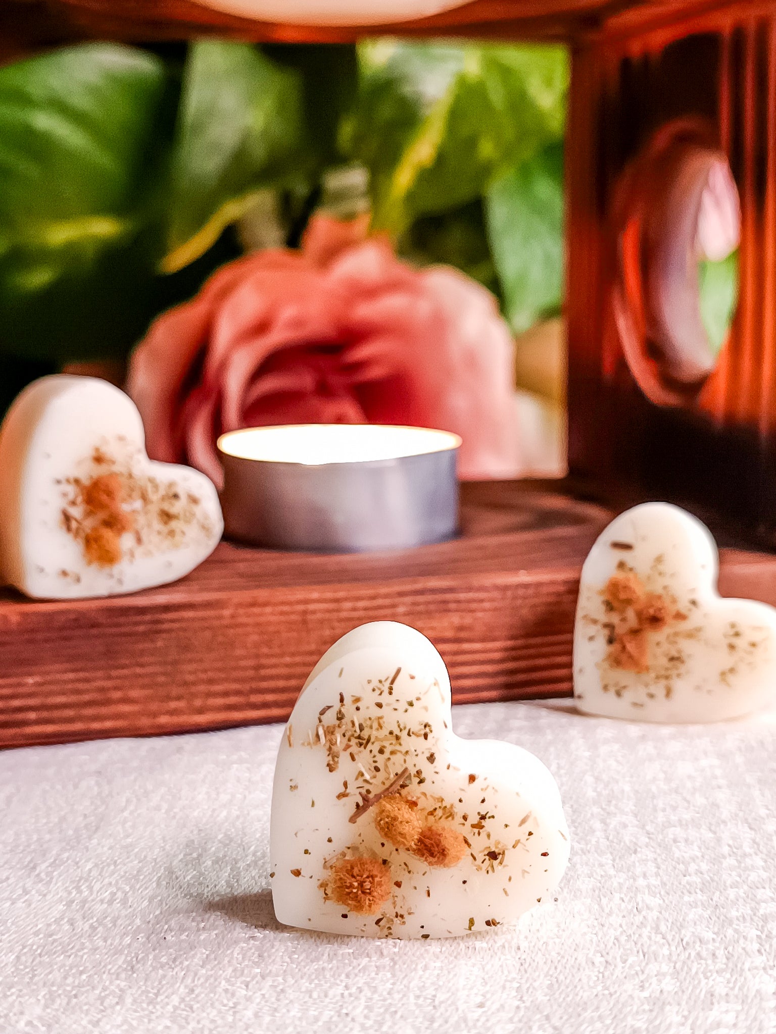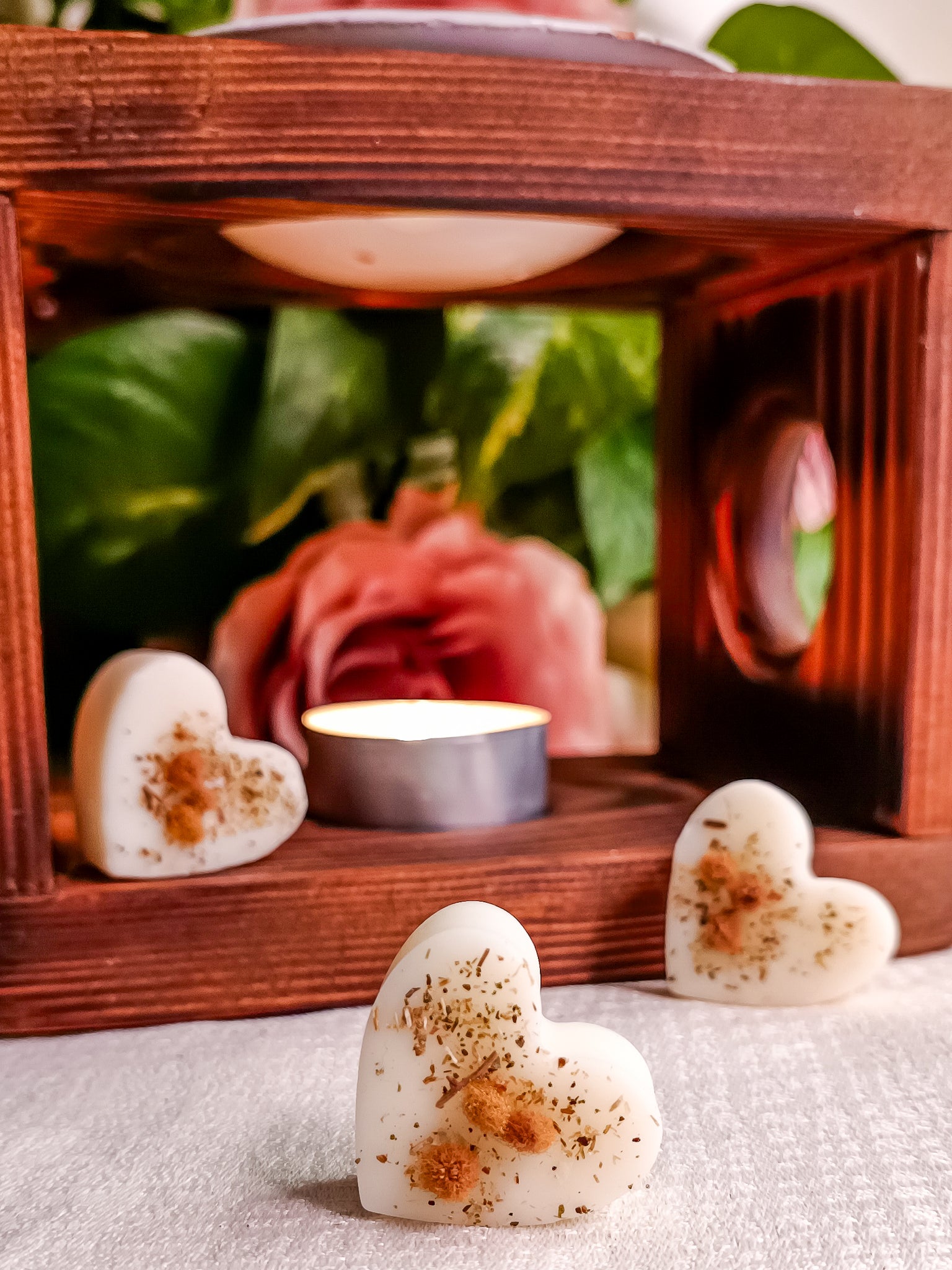 Les petits cœurs peuvent être utilisés comme tartelettes à fondre dans le Brûleur Essence ou comme parfumeurs pour les tiroirs, les armoires et les chambres.