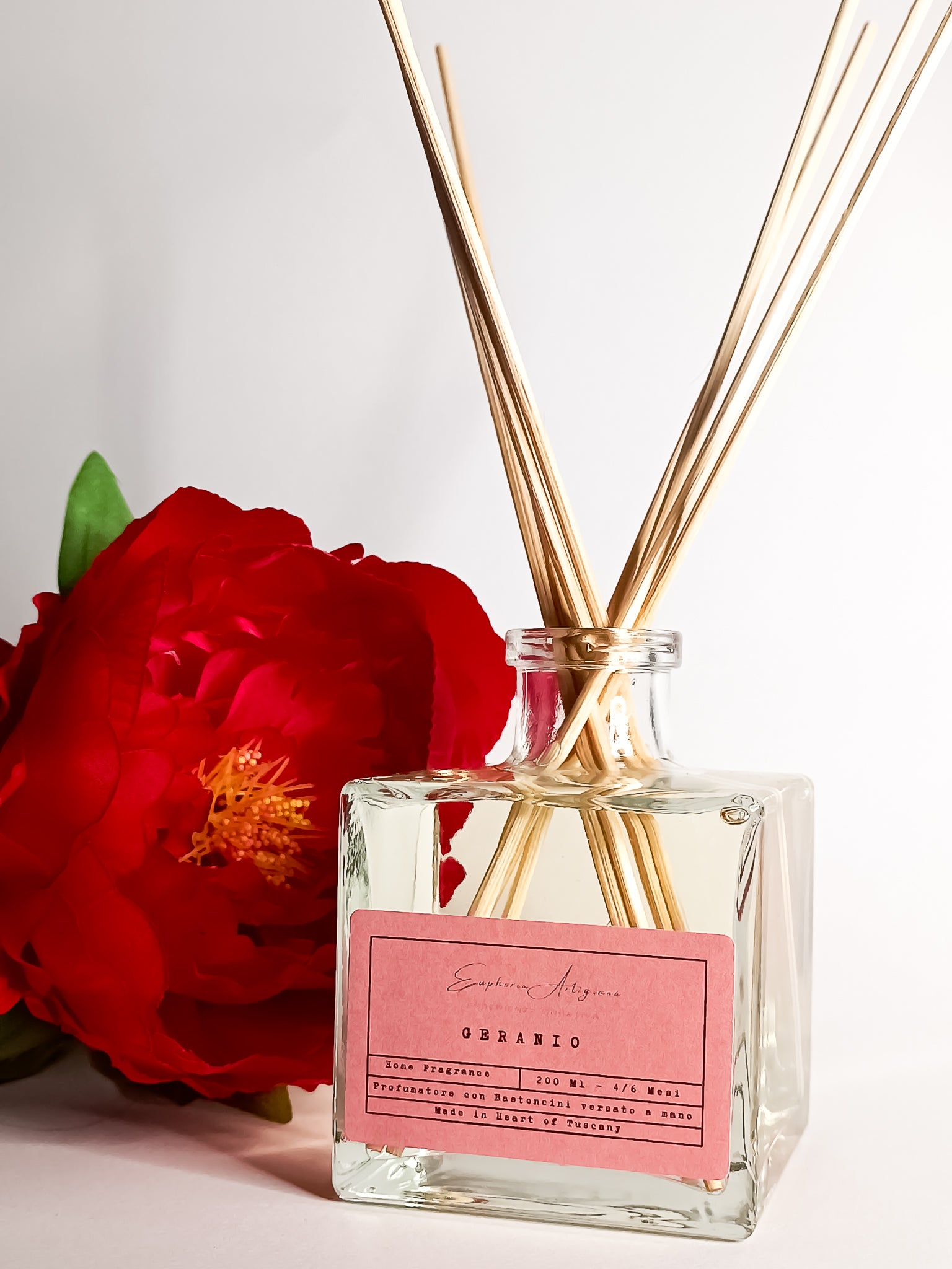 Désodorisant avec GERANIO Sticks, versé à la main avec amour.