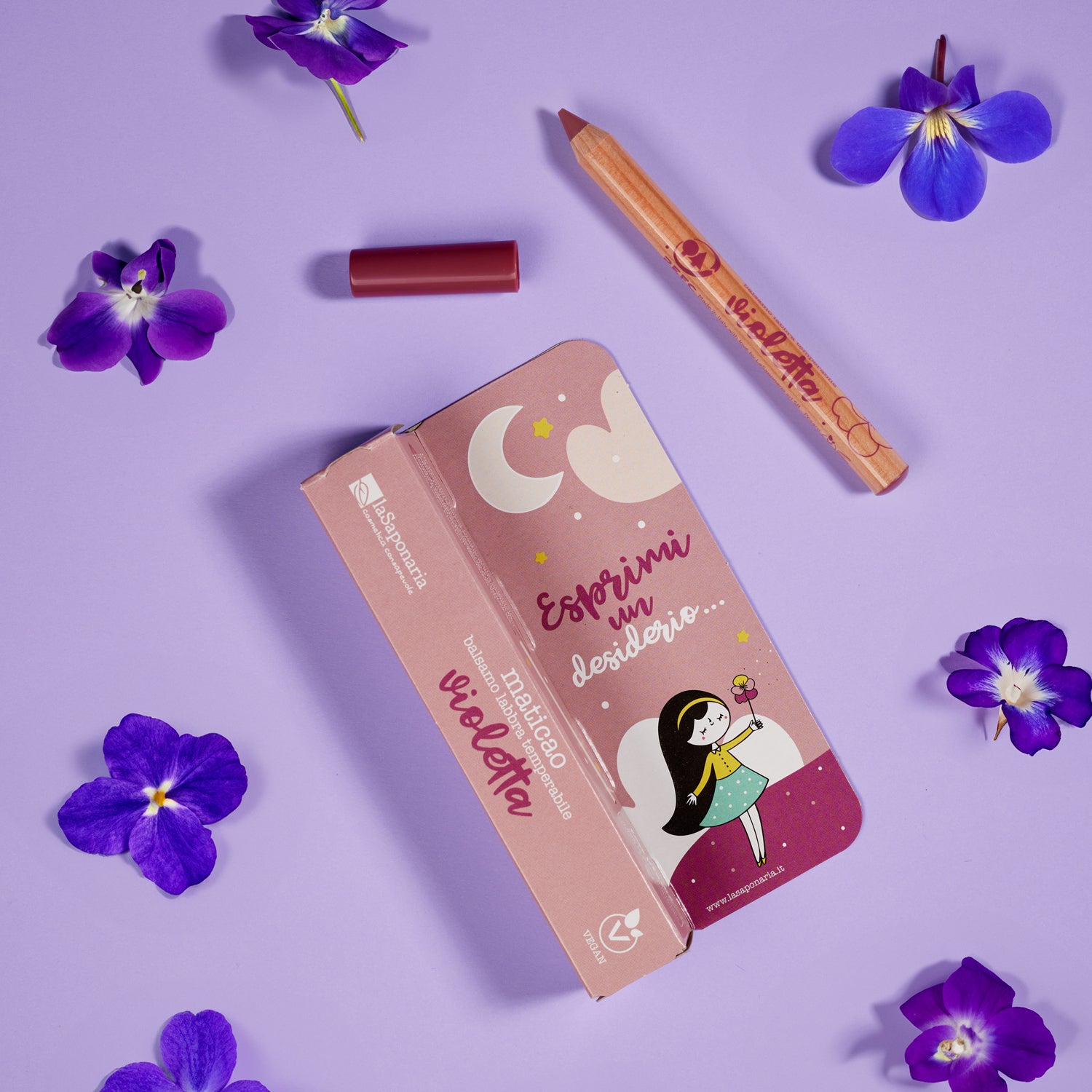 De la texture douce et au doux parfum de vanille, il protège vos lèvres du froid et des agents extérieurs, les hydrate grâce aux actifs antioxydants et émollients et laisse une légère touche de violette.